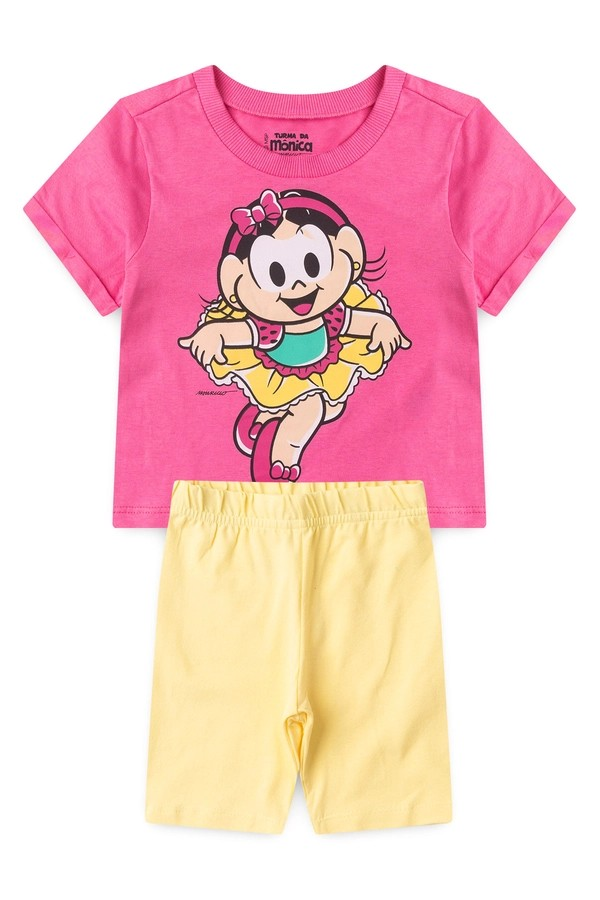 O Conjunto Infantil Feminino Festa da Magali traz toda a alegria e apetite irresistível da Magali direto para o guarda-roupa das meninas na Turma da Mônica: o cropped em meia malha 100% algodão na cor rosa delicado exibe uma estampa frontal encantadora da personagem, com detalhe das manguinhas dobradas que adicionam um charme fofo e moderno, oferecendo toque extremamente macio, respirável e conforto absoluto na pele sensível durante brincadeiras, festas ou tardes cheias de energia. A bermuda estilo ciclista em cotton (96% algodão e 4% elastano) na cor amarela vibrante completa o look com cobertura segura, elasticidade suave que acompanha cada movimento e caimento perfeito que não marca nem restringe — ideal para as pequenas que adoram se sentir livres e lindas ao mesmo tempo.
